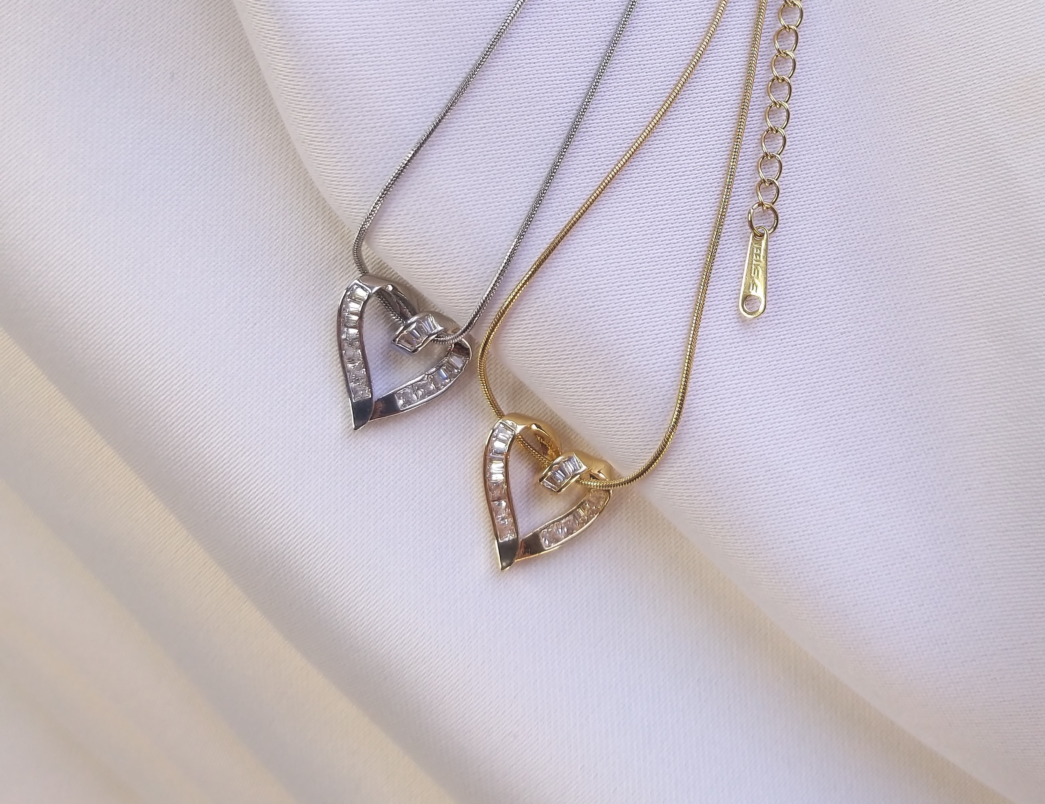 ÇELİK BAGET TAŞLI DÜĞÜM KALP KOLYE