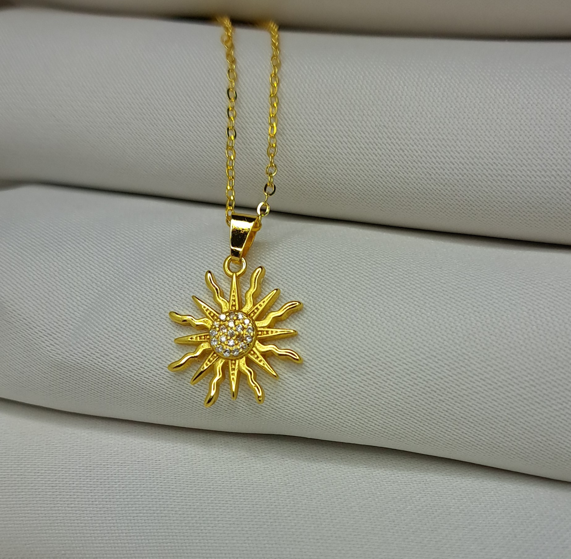 GÜNEŞ KOLYE GOLD, farklı stillere ve kombinasyonlara uyum sağlayarak, her türlü kıyafetle mükemmel uyum sağlar. Günlük hayatınızda, özel davetlerde veya özel günlerde giyebileceğiniz bu kolye, sizi her zaman şık ve zarif bir görünüme kavuşturacaktır.