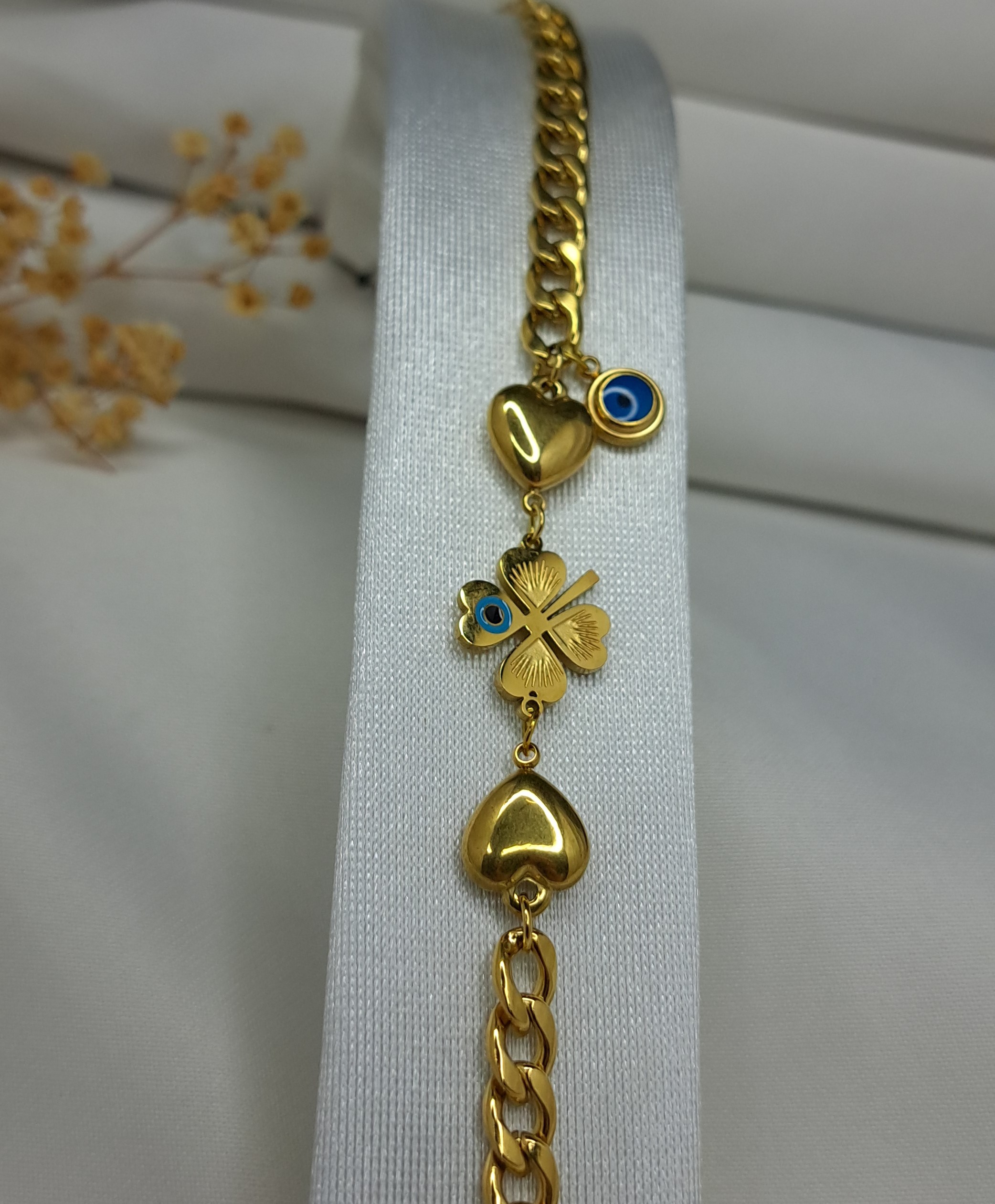 KALPLİ YONCA MODEL ÇELİK BİLEKLİK, göz alıcı kalp ve yonca tasarımıyla dikkat çeken zarif bir aksesuardır. Yüksek kaliteli çelik malzemeden üretilmiştir ve dayanıklılığı ile öne çıkmaktadır.
