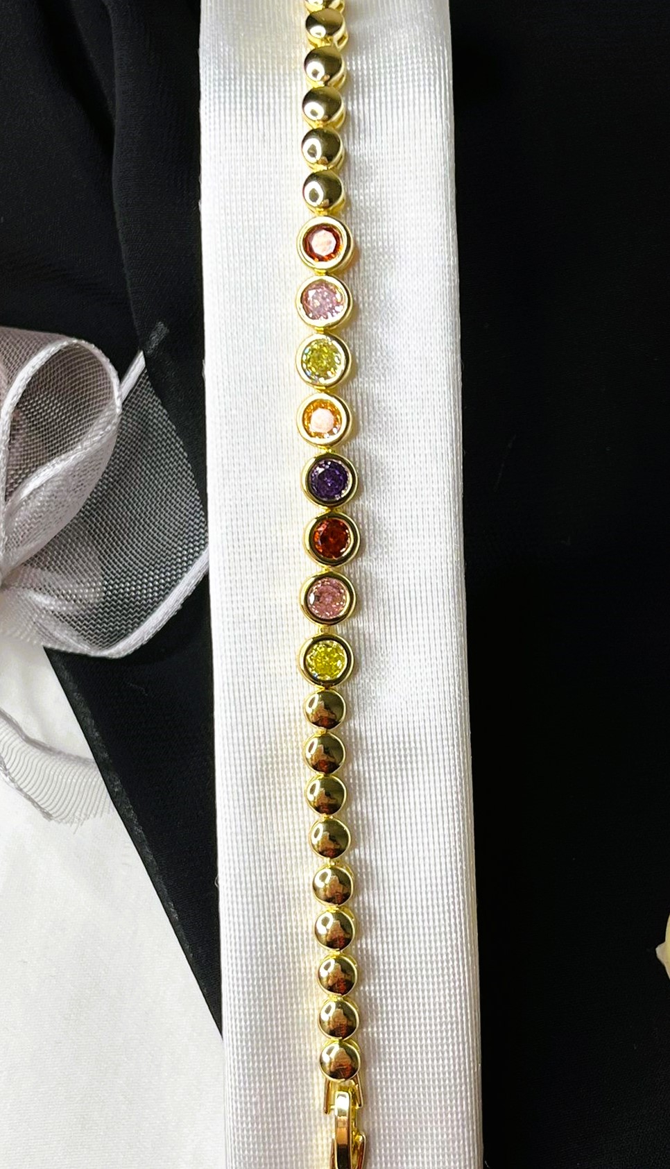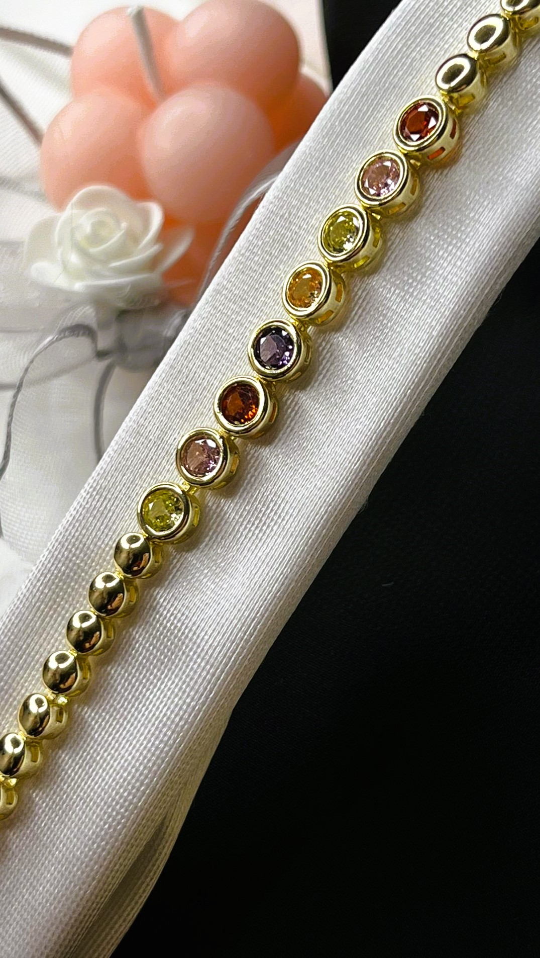 Bu zarif bilekliğin yapımında en kaliteli malzemeler kullanılmıştır. Üstün işçilik ve detaylara özen gösterilerek, sizlere eşsiz bir ürün sunulmuştur. Bilekliğin üzerindeki mücevherler incelikle seçilmiş ve özenle yerleştirilmiştir. Bu sayede parlaklığını ve asaletini korumayı başarmıştır.