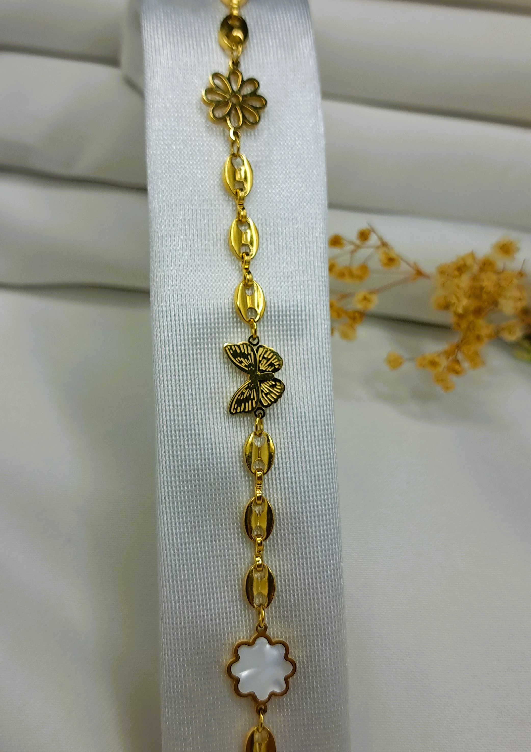 Bu özel bileklik, nostaljik ve modern tasarımı bir araya getirerek her zevke hitap eder. Zarif ve klasik detayları ile her dönemde geçerli ve modadır. Bileklik üzerindeki minimal ve şık kelebek figürleri, kadınların zarafetini ve doğal güzelliklerini yansıtır. Bu özel tasarım sayesinde bilekliğin kullanımı gündelik hayatta olduğu kadar özel günlerde de çok uyumludur.